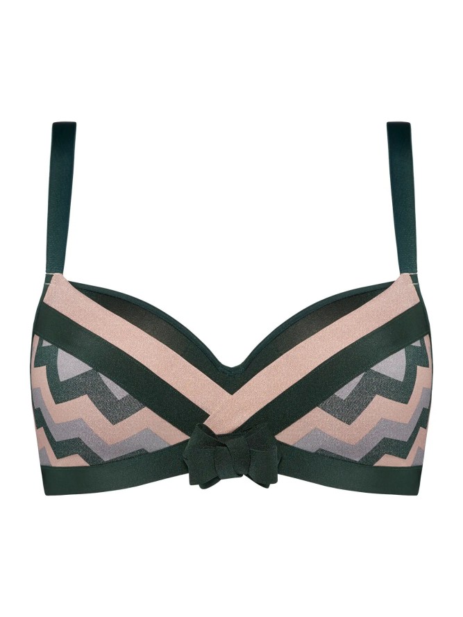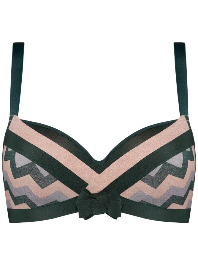 Oryginalny w kolorze beżowym biustonosz z usztywnianymi miseczkami z fiszbinami o kroju typu balkonetka. Świetnie unosi biust do góry eksponując dekolt. Miseczki gładkie, bezszwowe, termicznie wyprofilowane. Doskonale podtrzymują i unoszą nawet...