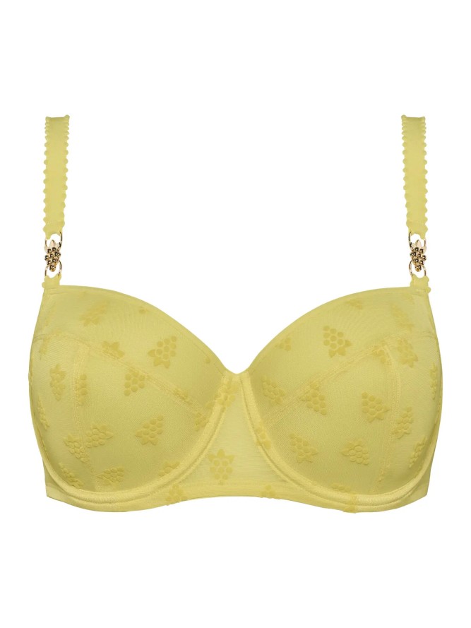 Wyjątkowo oryginalnie wykończony biustonosz typu balkonetka, to prawdziwy hit. Osadzone na fiszbinach miseczki w zmysłowej czerwieni, tworzą bardzo uwodzicielski dekolt. Góra miseczek wykończona ozdobnymi paskami biegnącymi od mostka do...