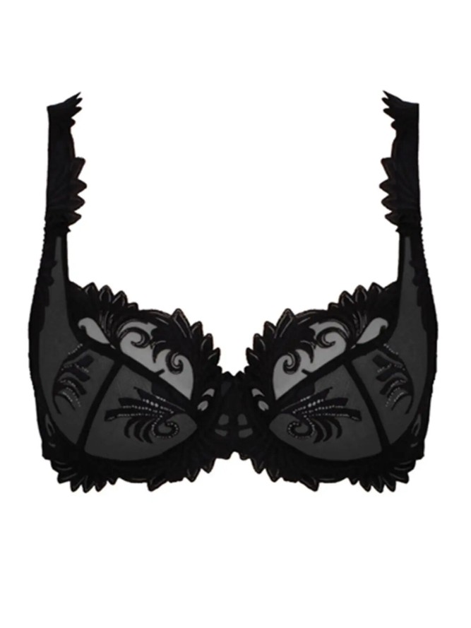 BIUSTONOSZ EMPREINTE THALIA 0856 to elegancka propozycja dla kobiet ceniących sobie komfort i styl. Ten czarny biustonosz typu balkonette wyróżnia się ponadczasowym designem, idealnie podkreślającym naturalne piękno biustu. Empreinte, jako lider w dziedzinie bielizny, łączy w Thalii wyjątkową precyzję wykonania z najwyższej jakości materiałami. Miseczki w konstrukcji balcony delikatnie unoszą i eksponują biust, zapewniając jednocześnie doskonałe wsparcie. Ramiączka są regulowane, średniej szerokości, co gwarantuje optymalne dopasowanie i komfort noszenia przez cały dzień. Czerń nadaje bieliźnie elegancji i dodaje zmysłowości każdej stylizacji. Jeśli szukasz bielizny, która łączy w sobie wygodę z eleganckim wyglądem, biustonosz Empreinte Thalia to wybór doskonały. Polecany dla pań poszukujących klasycznego kroju, który doskonale współgra z różnymi typami ubrań, jednocześnie podkreślając naturalne atuty sylwetki.