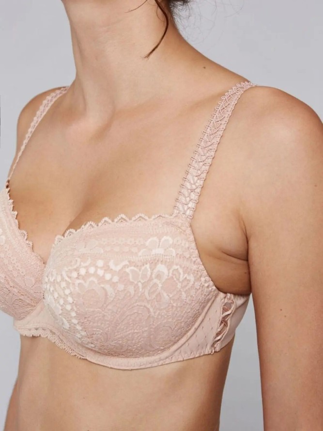 Biustonosz Maison Lejaby Hanae G51531 to doskonały wybór dla kobiet ceniących elegancję i wygodę. Model ten charakteryzuje się misternie skonstruowaną miseczką, która zapewnia doskonałe podtrzymanie biustu, uwydatniając jego naturalny kształt. Beżowy kolor nadaje biustonoszowi subtelny i uniwersalny charakter, doskonale komponując się z wieloma stylizacjami.. Miseczki wykonane z miękkiego materiału zapewniają wyjątkowy komfort noszenia przez cały dzień. Maison Lejaby słynie z dbałości o detale, co widać w precyzyjnych wykończeniach i wysokiej jakości materiałach. Wybierz biustonosz Hanae G51531, aby poczuć luksus i wygodę każdego dnia.
