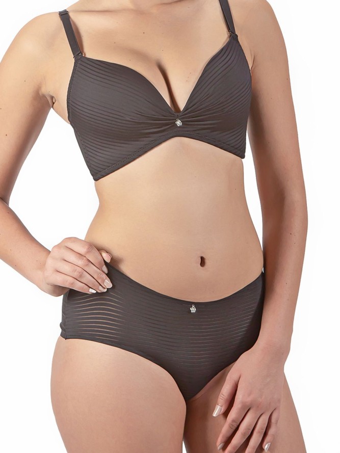 Biustonosz Dori, to kwintesencja stylu zamknięta w wygodnym opakowaniu! Odpowiednio wyprofilowane miseczki z technologią push-up, są nie tylko wyjątkowo lekkie ale przede wszystkim doskonale zbierają i podnoszą biust, tworząc efekt głębokiego dekoltu, nawet przy mniejszych rozmiarach. Delikatne tłoczenia materiału w połączeniu z biżuteryjną ozdobą w okolicy mostka, nadają całości zmysłowego wyglądu. Całkowicie odpinane oraz regulowane po całości ramiączka czynią model jeszcze bardziej praktycznym. Tył biustonosza zapinany na trzy haftki, wykonano z podwójnego tiulu dzięki czemu nie rozciąga się, a przy tym wygląda wyjątkowo efektownie. Zdecydowanie model MUST - HAVE !!!