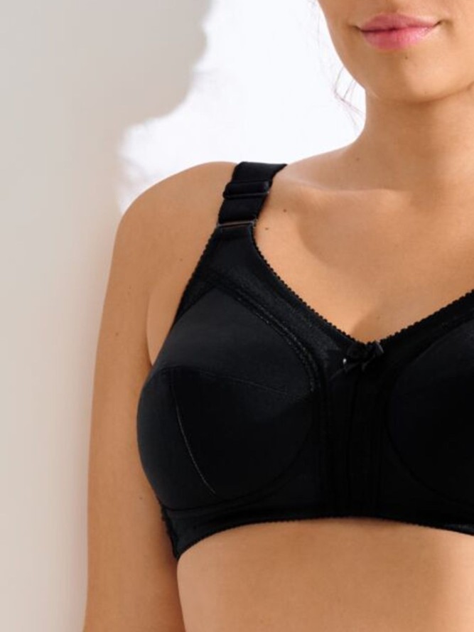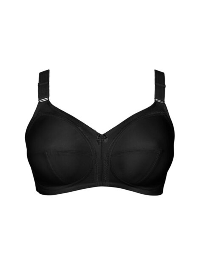 Wykonany z najwyższej jakości materiałów, biustonosz charakteryzuje się miękkimi miseczkami, które delikatnie dopasowują się do kształtu ciała, zapewniając naturalne podtrzymanie i kształtowanie biustu. Eleganckie, regulowane ramiączka gwarantują idealne dopasowanie, a brak fiszbin sprawia, że jest to idealny wybór na co dzień. Czarny kolor dodaje mu niezwykłej uniwersalności i elegancji, dzięki czemu doskonale komponuje się z każdą garderobą.