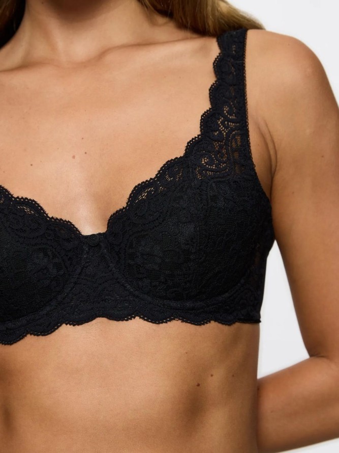 Biustonosz Triumph Amourette WHP to połączenie elegancji i komfortu, które zadowoli każdą kobietę poszukującą idealnego wsparcia na co dzień. Dzięki usztywnianym miseczkom zapewnia doskonałe podtrzymanie biustu, jednocześnie kształtując sylwetkę i podkreślając naturalne piękno. Wykonany z wysokiej jakości materiałów, ten biustonosz gwarantuje trwałość i komfort przez cały dzień. Klasyczny czarny kolor dodaje mu wyjątkowego szyku, a ozdobne koronki nadają subtelnej kobiecości.