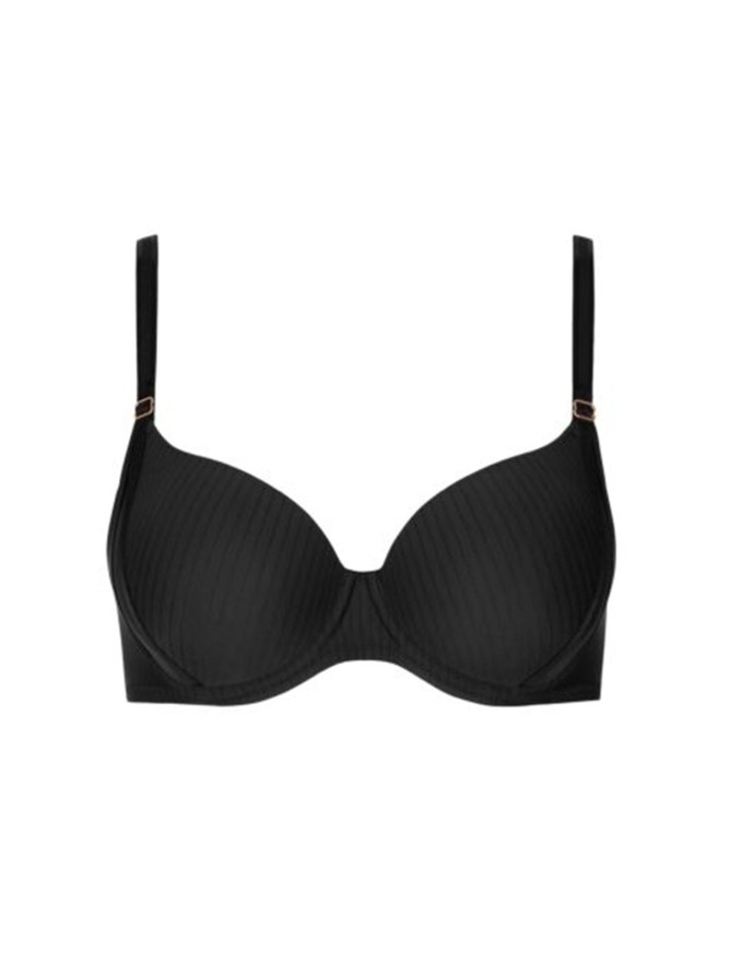 Biustonosz ten jest usztywniany, co zapewnia doskonałe podtrzymanie oraz pięknie modeluje biust. Miseczki wykonane są z wysokiej jakości materiałów, które delikatnie dopasowują się do kształtu ciała, oferując niezrównany komfort noszenia przez cały dzień. Regulowane ramiączka gwarantują idealne dopasowanie, co zwiększa komfort użytkowania i zapobiega zsuwaniu się.
