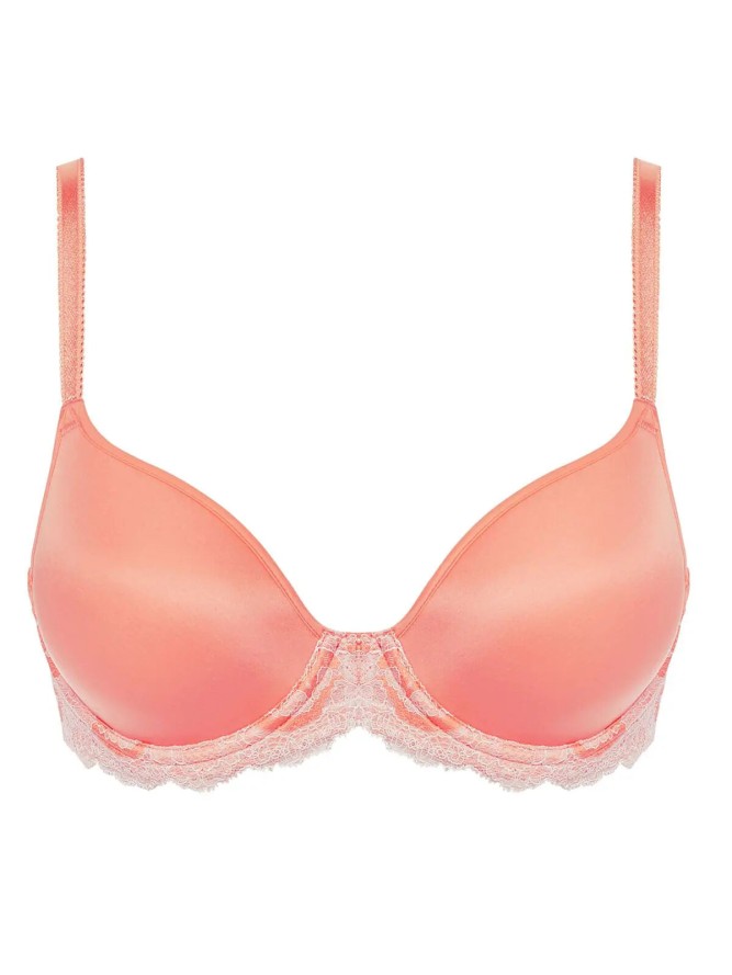 Biustonosz Wacoal Lace Affair to model usztywniany, zapewniający doskonałe podtrzymanie i kształtowanie biustu. Miseczki o niezwykle miękkiej wyściółce, wykonane z delikatnej koronki, doskonale dopasowują się do ciała, gwarantując komfort noszenia przez cały dzień. Regulowane ramiączka umożliwiają idealne dopasowanie do sylwetki, a subtelna pomarańczowa barwa dodaje świeżości i stylu.