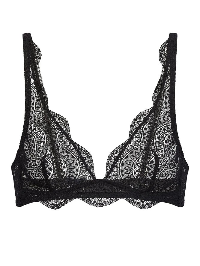 To efektowny biustonosz z kolekcji After Hours marki B. Temptd. To stylowy, koronkowy top osłaniający ramiona o mocno zabudowanym dekolcie aż po szyję. Model ten zapewnia komfort użytkowania a jednocześnie modny i seksowny wygląd. Beżowe...