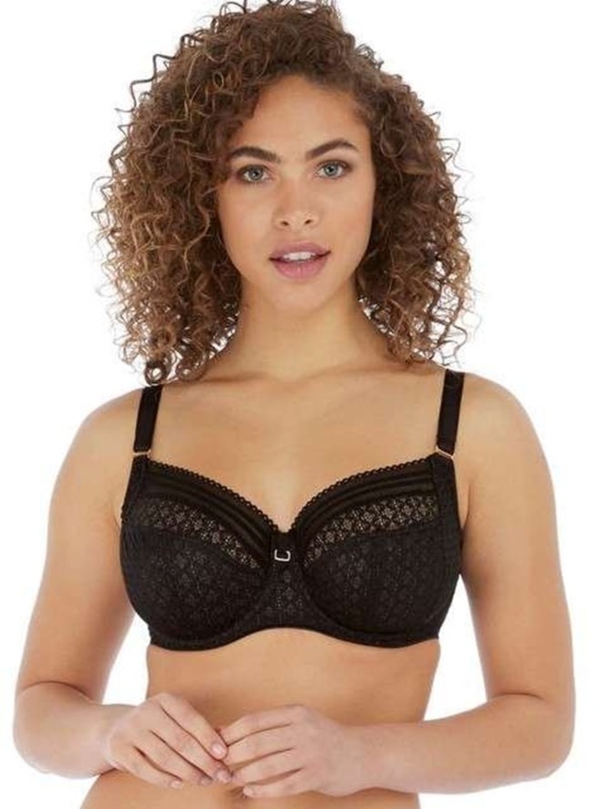 Elegancki biustonosz typu balkonetka z fiszbinami. Miseczki miękkie z pionowym cięciem unosi zbiera biust do dekoltu. Model dla kobiet z jędrny biustem. Efektowna koronka z haftem na delikatnym tiulu nadaje mu bardzo uwodzicielski wygląd....