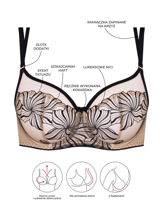Biustonosz Samanta Roma A143 w kolorze beżowo-czarnym łączy klasyczną kolorystykę z nowoczesnym designem, co sprawia, że jest nie tylko praktyczny, ale również stylowy. Wykończenia czynią go idealnym wyborem zarówno pod codzienną, jak i wieczorową garderobę. Biustonosz ten to must-have w każdej damskiej szafie, oferując nie tylko wysoki komfort, ale także elegancję i subtelność we wzornictwie. Wybierz Samanta Roma A143 i poczuj różnicę w jakości i stylu.