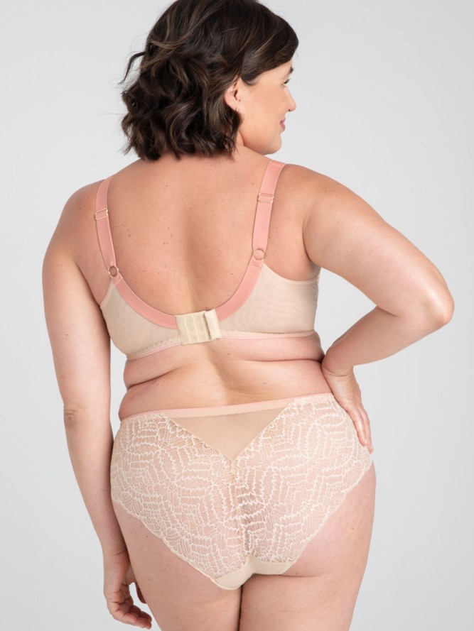 Model ten charakteryzuje się delikatnymi beżowymi tonacjami, które stanowią doskonałą bazę pod każdą stylizację, zarówno do pracy, jak i na co dzień. Biustonosz wyposażono w regulowane ramiączka, co umożliwia idealne dopasowanie do sylwetki, podkreślając naturalne piękno każdej kobiety. Miseczki miękkie, wykonane z najwyższej jakości materiałów, zapewniają komfort noszenia przez cały dzień, jednocześnie modelując biust.