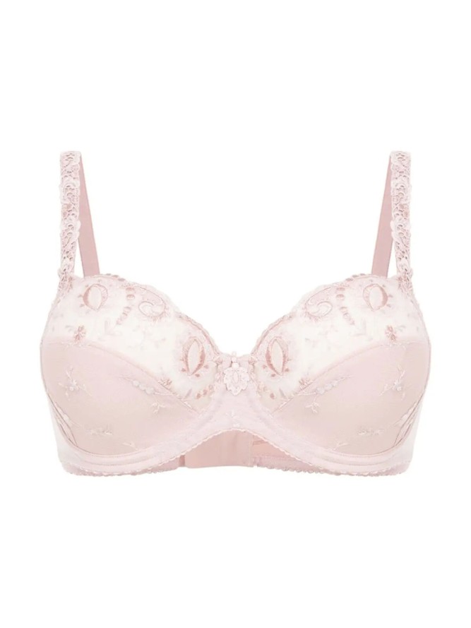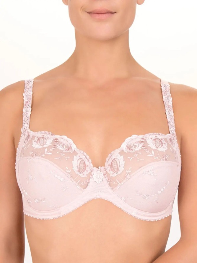 Elegancki biustonosz na termoplastycznych fiszbinach od firmy Maison Lejaby. Wykonany z francuskich materiałów model, dzięki zastosowanej konstrukcji, która dzieli miseczkę na trzy części, doskonale zbiera i unosi biust. Tiulowy przód biustonosza...