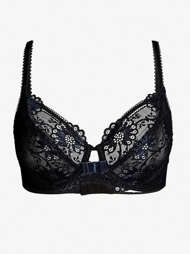 Adore to biustonosz damski zaprojektowany przez brytyjską markę Wacoal. To zachwycający model o klasycznym, bardziej zabudowanym kroju w głębokim czarnym odcieniu. Wykonany z delikatnej koronki ozdobionej błyszczącym, kwiatowym wzorem w kolorze ciemnego granatu. Fason idealnie zbiera i podtrzymuje biust, nadając mu zaokrąglony kształt. Ponętnie wyeksponowany mostek zdobi kokardka z granatowej, aksamitnej tasiemki. Idealne dopasowanie a jednocześnie maksimum komfortu zapewniają sprężyste boki i odporny na rozciąganie tył posiadający dwurzędowe, trzystopniowe zapięcie oraz w pełni regulowane ramiączka. Zaprojektowany z myślą o kobietach, które cenią sobie komfortowy a jednocześnie efektowny design.