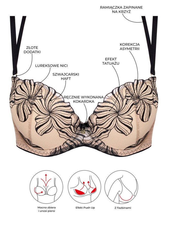 Odkryj niezwykły biustonosz Samanta Roma A332, który łączy w sobie wyjątkowy design i funkcjonalność. Jest idealnym wyborem dla kobiet poszukujących zarówno elegancji, jak i wygody. Ten model z kategorii push-up to synonim pewności siebie i atrakcyjnego wyglądu.