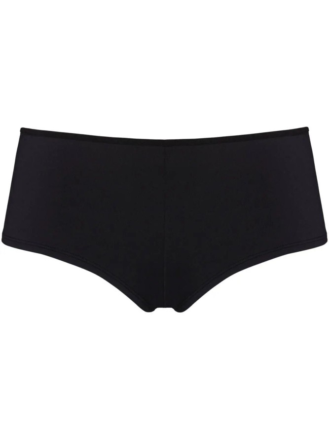 To efektowne szorty z kolekcji Dame de Paris. Przód wykonany został z gładkiego, miękkiego materiału o czarnej barwie, która zapewnia skórze możliwość swobodnego oddychania. Tylną część na zasadzie kontrastu uszyto z granatowej tkaniny pokrytej czarną koronką o kwiatowym wzorze i ozdobionej w pasie przeplatającymi się paskami. Mają zabudowany krój jednocześnie łącząc wygodę z nienaganną prezencją. Szersze nogawki idealnie przylegają do kształtu kobiecego ciała. Zakrywają pośladki, znakomicie przy tym podkreślając ich owalny kształt. Dla lepszego komfortu użytkowania krok wykończony został bawełną. Zaprojektowane z myślą o kobietach, które cenią sobie komfort noszenia oraz nienaganny wygląd.