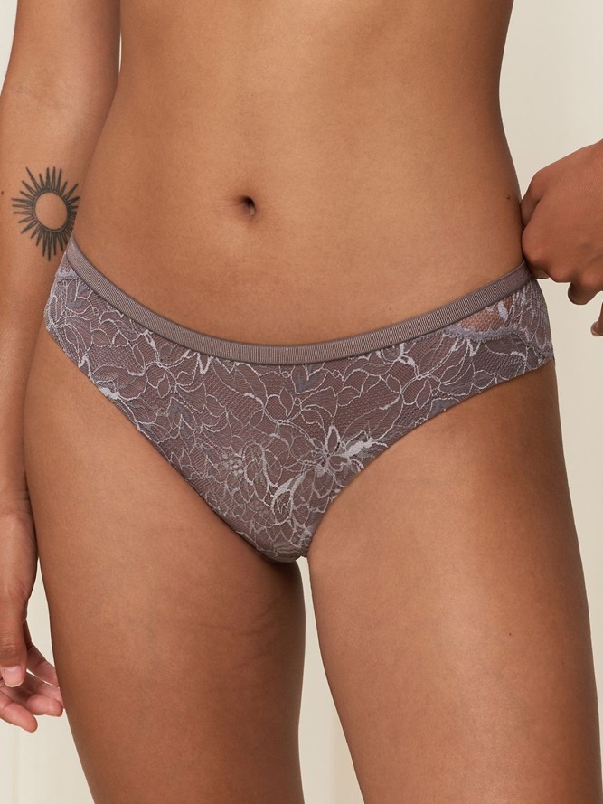 Model M300 to brazylian, które pięknie eksponują pośladki. Tył wykończony jest bezszwowo dzięki czemu nie odznaczają się nawet pod mocno dopasowana odzieżą. Model zdobi subtelna koronka z motywem kwiatów.