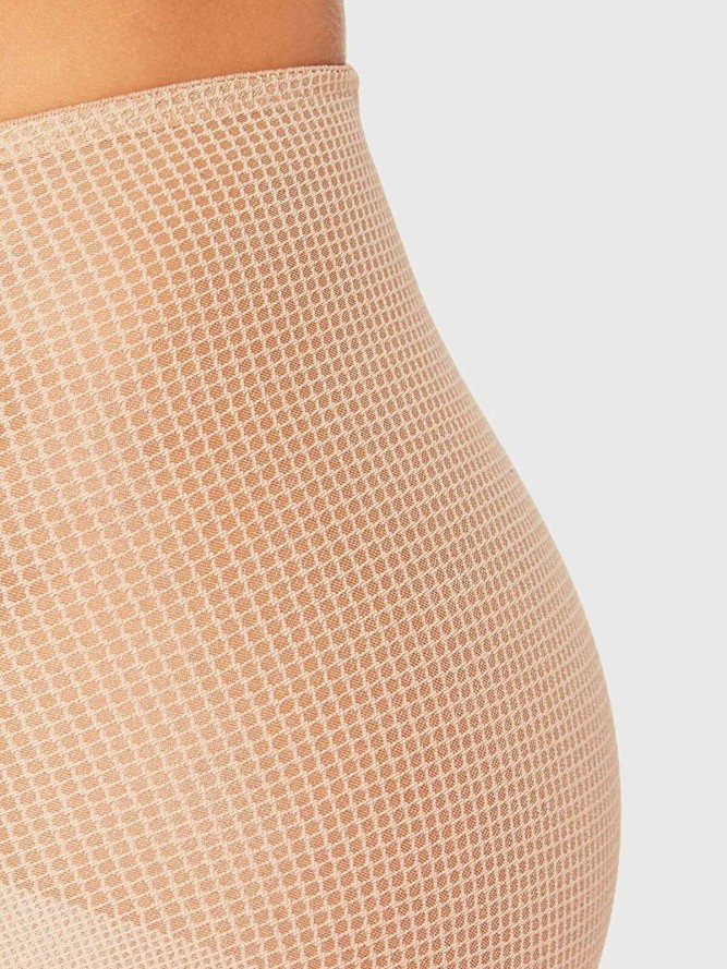 Silhouette od Maisona Lejaby, to bielizna modelująca w niecodziennym wydaniu. Te wyższe w konstrukcji kroju majtki, doskonale korygują niedoskonałości figury, dając efekt płaskiego brzucha. Wykonany z nowoczesnej tkaniny przód, zdobi pośrodku błyszcząca wstawka w kształcie trójkąta, która nadaje modelowi oryginalny, elegancki look. Dzięki mikro-żakardowej siatce zmieszanej z elastycznym tiulem, z której wykonano zarówno boki, jak i gładki tył modelu, produkt wygląda niezwykle delikatnie. Ultra płaskie wykończenia szwów sprawiają, że majtki są niewidoczne nawet pod bardzo dopasowanymi ubraniami. Dla poczucia większego komfortu oraz dyskrecji, wnętrze podszyto bawełnianą wkładką.