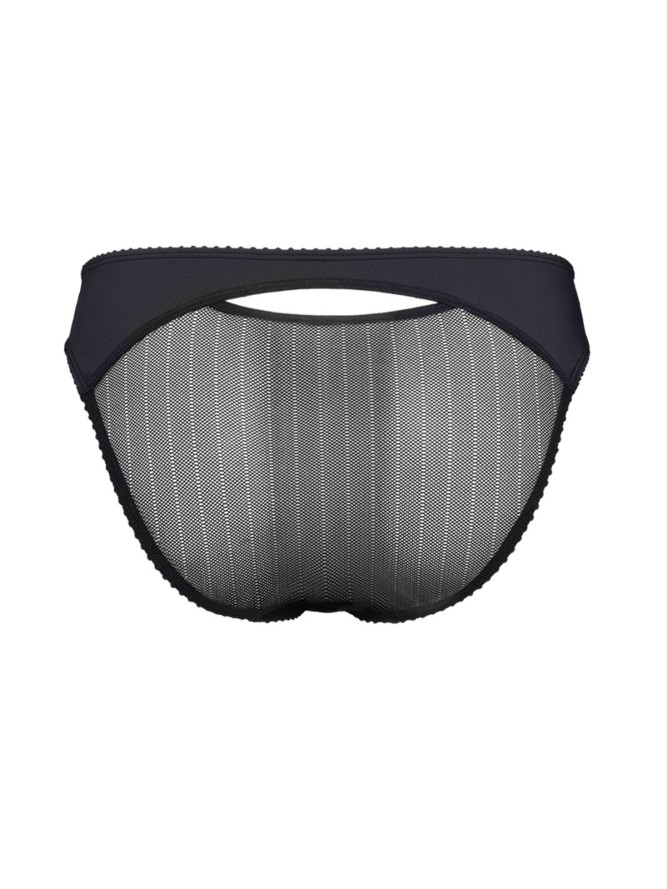 Figi te, utrzymane w eleganckim czarnym kolorze, doskonale wpisują się w stylizacje na każdą okazję. Ich klasyczna budowa i średnia wysokość zapewniają niebywały komfort noszenia, idealnie sprawdzając się jako codzienna bielizna. Charakterystyczne detale projektu inspirowane sztuką Mauritshuis nadają im unikalny wygląd, który przyciąga wzrok.