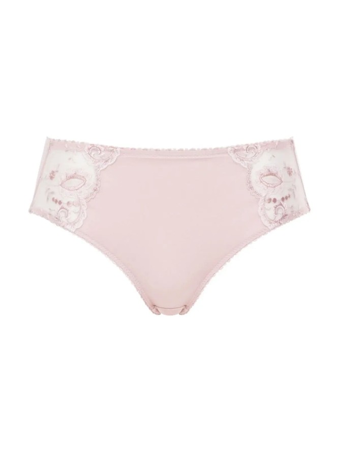 Delikatne figi damskie o fasonie klasycznym. Model wykonana z tiulu, na którym jest gustowna koronka w motywie kwiatowym. Górna część ozdobiona małą subtelną kokardką, która nadaję dziewczęcego uroku. Nienaganne wykonanie oraz wysokogatunkowy...