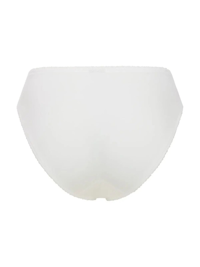 Delikatne klasyczne figi, w których każda kobieta poczuje się wyjątkowo. Przód z gładkiego materiału, otulony delikatną koronką po bokach z pięknym haftem. Pas wykończony gumką i malutką atłasową kokardką. Tył gładki z pionowym przeszyciem oraz...