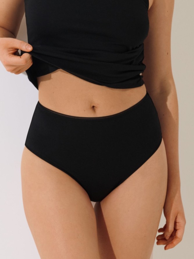 Figi te charakteryzują się wysokim stanem, co podkreśla talię i modeluje sylwetkę, zapewniając jednocześnie komfort i swobodę ruchów. Materiał delikatny dla skóry, a jednocześnie wytrzymały, idealnie sprawdzi się w codziennym użytkowaniu. Czarny kolor dodaje figom elegancji i sprawia, że są doskonałym wyborem na każdą okazję.