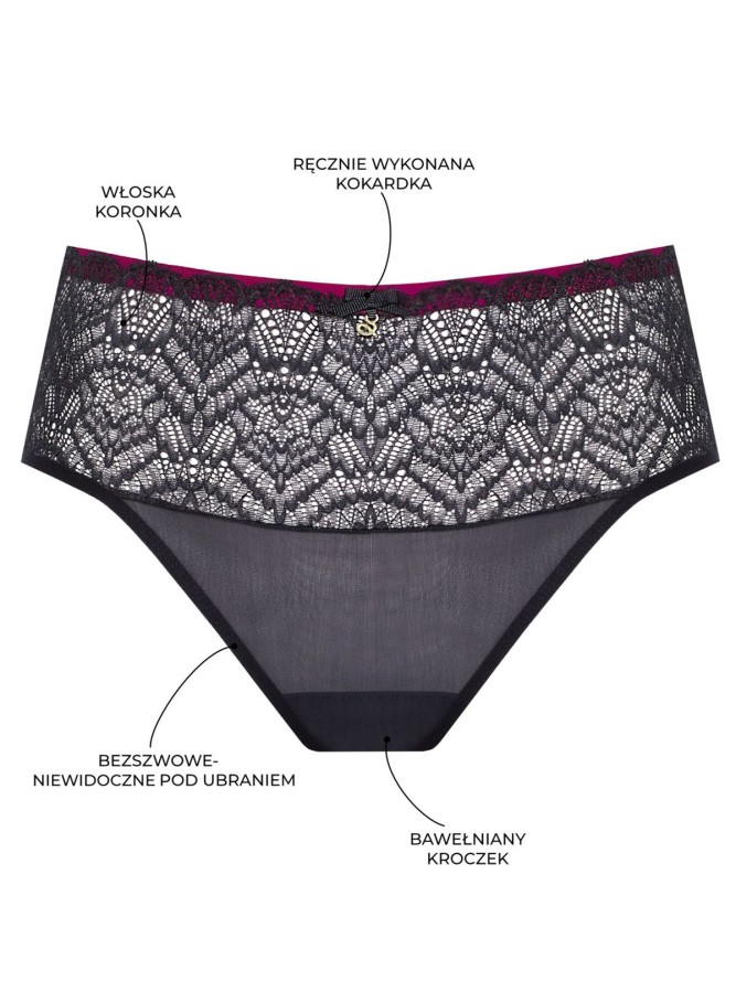 Wykonane z najwyższej jakości materiałów, figi Samanta Charlotte C400 zapewniają doskonałe dopasowanie i wygodę noszenia przez cały dzień. Są to klasyczne stringi, które charakteryzują się niskim stanem, podkreślając naturalne kształty i dodając subtelnej zmysłowości. Dostępne w ponadczasowym, uniwersalnym czarnym kolorze, idealnie komponują się z różnorodnymi stylizacjami, od codziennych po wieczorowe.