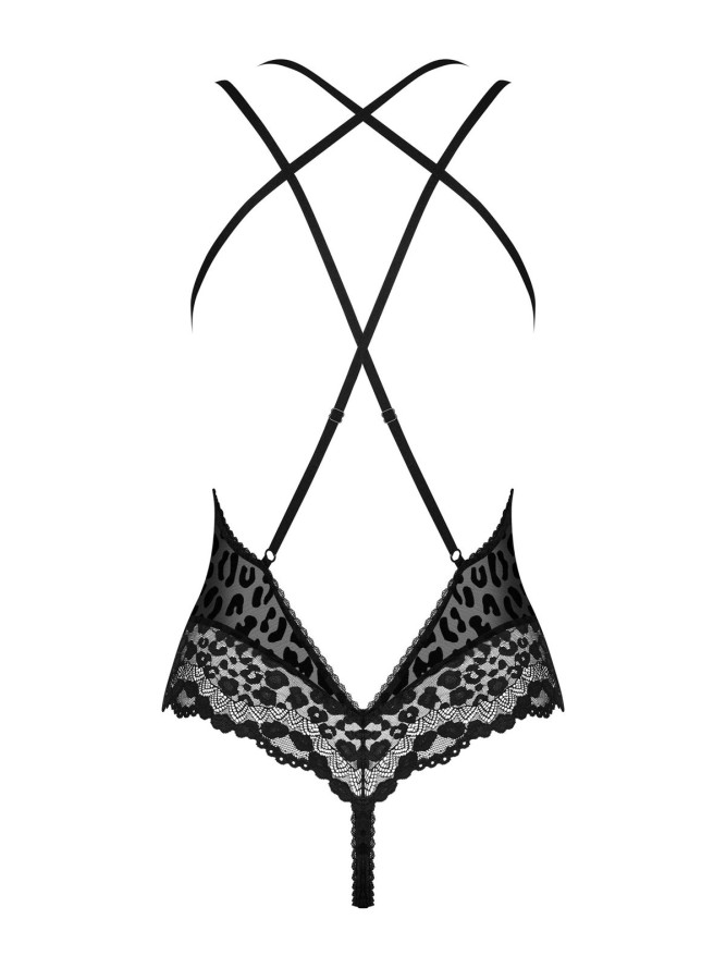Eleganckie body o świetnym wzorze. Koronkowy biustonosz uwydatnia biust. Regulowane ramiączka i kilkustopniowe zapięcie są gwarancją idealnego dopasowania. Elastyczny choker zakładany na szyję dodaje elegancji i szyku. Koronkowe figi ze...