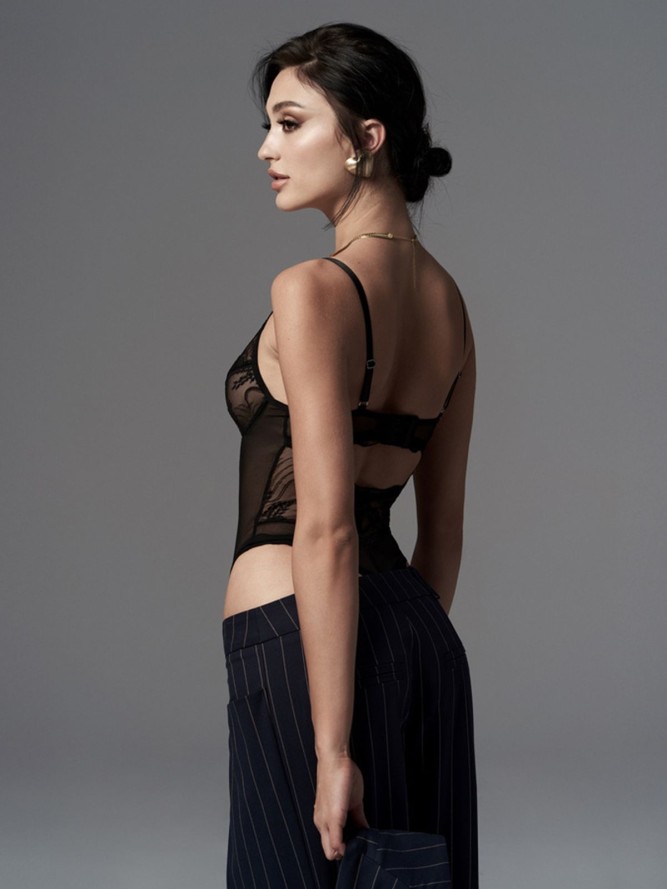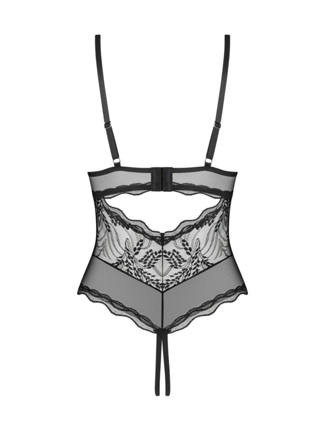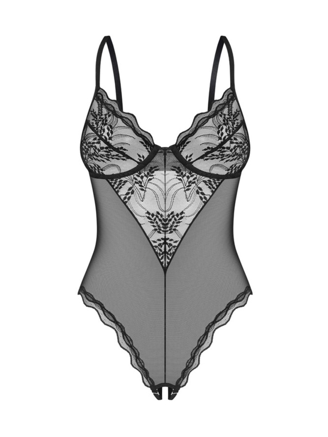 Body Obsessive Perisia to elegancki i uwodzicielski wybór, który podkreśli Twoją kobiecość i doda pewności siebie. Model wykonany z wysokiej jakości materiałów w klasycznym czarnym kolorze, idealnie dopasowuje się do sylwetki, eksponując jej atuty. Głębokie wycięcia oraz delikatne koronkowe zdobienia nadają całości wyjątkowego charakteru, czyniąc z niego idealny wybór zarówno na romantyczne wieczory, jak i na wyjątkowe okazje. Body posiada głęboki dekolt w kształcie litery V, który efektownie podkreśla biust, oraz regulowane ramiączka dla pełnego komfortu noszenia. Body z wyciętym krokiem, jest zarówno wygodne, jak i niezwykle zmysłowe. Subtelne detale i precyzyjne wykończenie czynią ten model kwintesencją stylu i elegancji, której poszukują kobiety dbające o każdy szczegół swojej garderoby. Dzięki swojej wyjątkowej estetyce i komfortowi. Body Obsessive Perisia jest doskonałym wyborem dla kobiet ceniących luksusową bieliznę i pragnących wyglądać wyjątkowo w każdej sytuacji.
