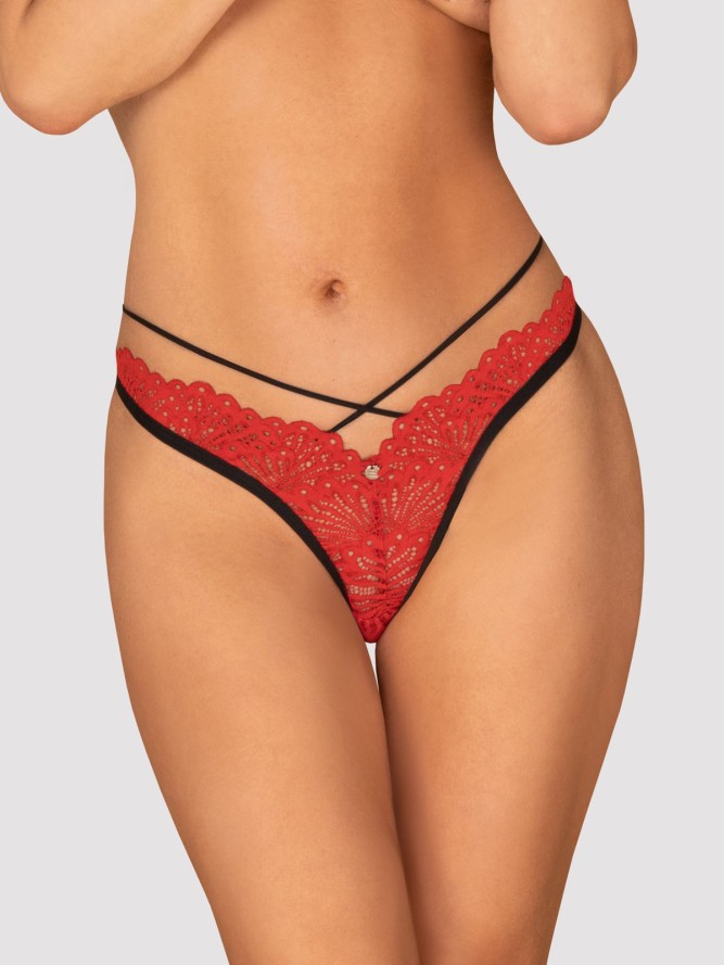 Seksowne stringi wykonane z delikatnej kwiatowej koronki w kolorze niebieskim, przyozdobione czarnymi geometrycznymi paskami na biodrach i z tyłu . Dopasowują się do kształtów ciała, eksponując wszystkie walory kobiecej sylwetki. Urocza zawieszka...