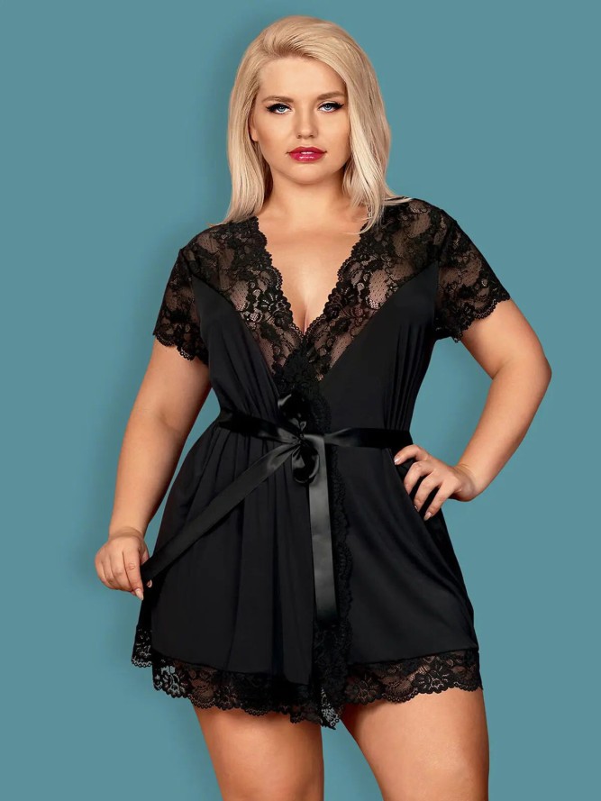 Ekskluzywny damski szlafrok. Model długi w całości wykonany z koronki przewiązany satynową taśmą. Rękawy 3/4 i motyw roślinny koronki nadają seksownego i oryginalnego wyglądu. Ten fason dedykowany jest dla pań, które lubią się czuć elegancko i...