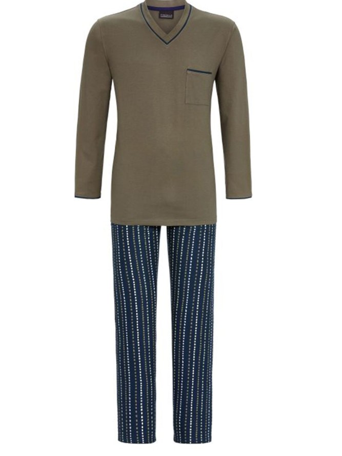 Piżama Ringella 3541214 - komfort i styl w jednym. Ta wyjątkowa piżama to doskonały wybór dla mężczyzn ceniących sobie wygodę i ponadczasowy design. Wyróżnia się eleganckim kolorem brązowym, który dodaje jej niepowtarzalnego uroku. Wykonana z najwyższej jakości materiałów, gwarantuje miękkość i trwałość, co jest niezbędne do zapewnienia spokojnego snu.