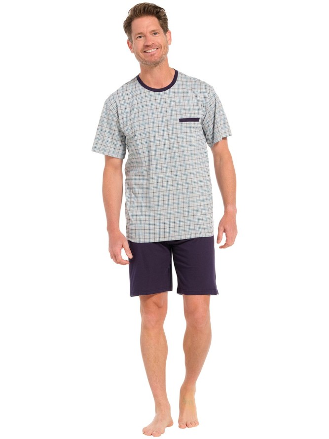 Piżama Pastunette 33241-614-2 to wyjątkowa propozycja dla mężczyzn ceniących komfort i oryginalny styl. Wybierając tę piżamę, zyskasz nie tylko wygodę, ale także modny wygląd dzięki motywowi w kratkę, który dodaje całości elegancji. W skład zestawu wchodzi koszulka z krótkim rękawem oraz spodnie o krótkiej nogawce, co czyni ją idealnym wyborem do spania. Piżama wyróżnia się klasycznym dekoltem, który zapewnia swobodę ruchów, nie krępując szyi. Materiał, z którego wykonano piżamę, jest miękki i oddychający, gwarantując komfortowy sen każdej nocy. Dzięki starannemu wykonaniu i wysokiej jakości tkaninom, piżama Pastunette jest trwała i odporna na wielokrotne pranie. Wybierz piżamę Pastunette 33241-614-2 i odkryj, jak komfort nocnego wypoczynku łączy się z elegancją i modnym designem w jednym produkcie. Idealna dla mężczyzn szukających funkcjonalnej i stylowej bielizny nocnej.