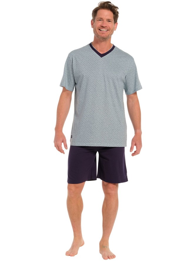 Piżama męska Pastunette 33241-608-2 to doskonały wybór dla mężczyzn ceniących styl i komfort. Wykonana z wysokiej jakości materiałów, zapewnia przewiewność i wygodę podczas snu. Krótki rękaw sprawia, że idealnie nadaje się na cieplejsze noce, a design z motywem geometrycznym dodaje nowoczesnego charakteru. Dekolt w kształcie litery V podkreśla klasyczny fason, jednocześnie zapewniając komfort noszenia. Spodnie o długości do kolan pozwalają na swobodę ruchów, czyniąc piżamę niezwykle praktyczną. Produkt jest częścią kategorii piżam męskich, dzięki czemu spełnia wymagania nawet najbardziej wymagających klientów. Piżama Pastunette jest idealna dla osób poszukujących wyjątkowego połączenia designu i funkcjonalności. Dzięki nowoczesnemu wzornictwu będzie doskonałym wyborem zarówno na codzienny użytek, jak i na prezent. Zainwestuj w komfortowy sen i ciesz się niezrównaną jakością piżamy Pastunette.