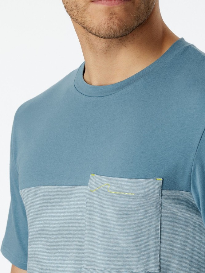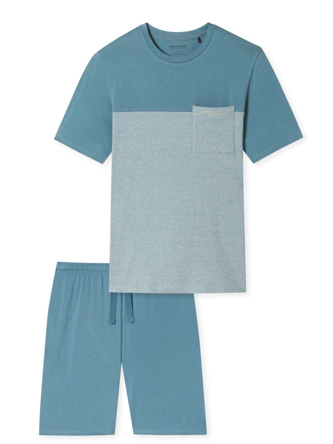 Piżama Schiesser 181167 charakteryzuje się dopasowanym fasonem z krótkimi rękawami, idealnym dla cieplejszych nocy. Półokrągły dekold dodaje jej nowoczesnego wyglądu i dodatkowo zapewnia wygodę. Długość nogawki została starannie dobrana, aby zapewnić swobodę ruchów podczas snu. To wyjątkowa propozycja dla mężczyzn poszukujących nie tylko komfortu, ale także stylu w codziennym użytkowaniu bielizny nocnej. Wybierając tę piżamę, inwestujesz w jakość i nowoczesny design.