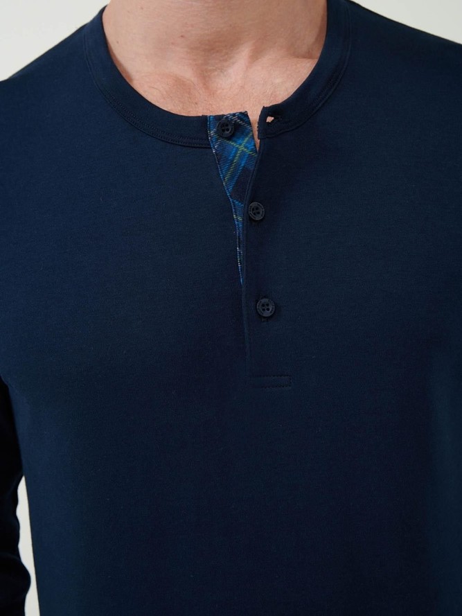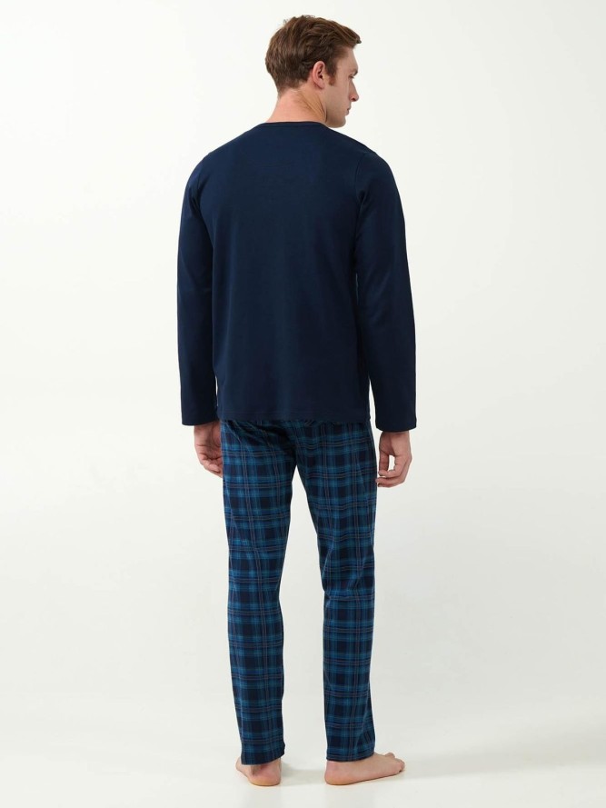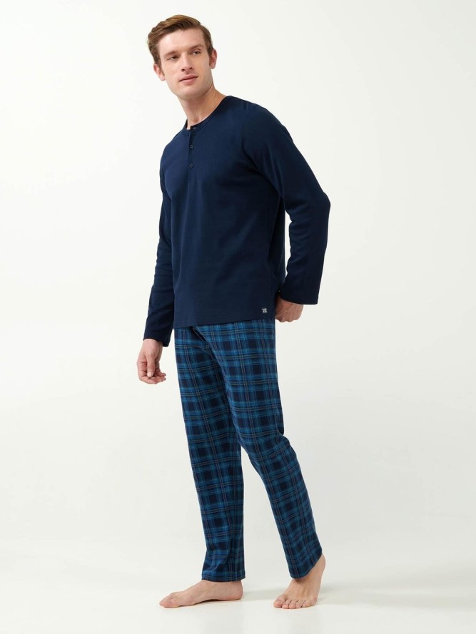Piżama VAMP 21621 to idealna propozycja dla mężczyzn ceniących komfort i elegancję podczas snu. Ta stylowa piżama wykonana jest z wysokiej jakości materiałów, co gwarantuje wygodę i trwałość użytkowania. Granatowy kolor nadaje jej klasycznego i uniwersalnego wyglądu, idealny dla każdego mężczyzny. Fason z długim rękawem oraz długimi nogawkami zapewnia dodatkowe ciepło w chłodniejsze noce, co czyni ją doskonałym wyborem na każdą porę roku.