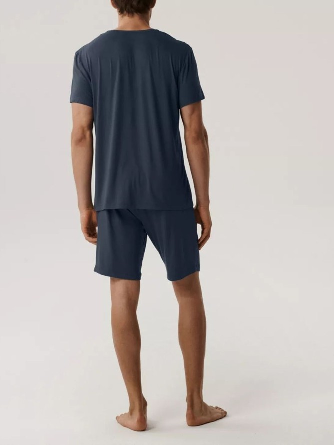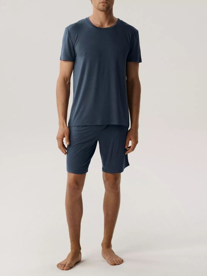 Szukasz wygodnej i stylowej piżamy na letnie wieczory? Model PIŻAMA ATLANTIC BNMP-005 to propozycja, która z pewnością spełni Twoje oczekiwania. Ta piżama w kolorze niebieskim charakteryzuje się nowoczesnym fasonem z krótkim rękawem i okrągłym dekoltem, co zapewnia maksymalny komfort noszenia. Krótka nogawka to idealne rozwiązanie na cieplejsze noce, zapewniając swobodę ruchów oraz przewiewność.