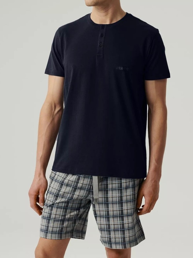 Piżama Atlantic NMP-380 to doskonały wybór dla osób ceniących wygodę i styl podczas snu. Wykonana z wysokiej jakości materiałów, gwarantuje komfort noszenia przez cały rok. Jej wielokolorowy wzór dodaje energii i sprawia, że każda noc staje się przyjemnością. Piżama posiada okrągły dekolt na guziki, co umożliwia łatwe zakładanie i dopasowanie do szyi. Krótki rękaw oraz krótka nogawka zapewniają swobodę ruchów i doskonałą wentylację, idealną na cieplejsze noce. Produkt należy do kategorii piżam męskich, a jego nowoczesny design sprawia, że sprawdzi się nie tylko jako strój do snu, ale również jako wygodne ubranie domowe. Wybierając piżamę Atlantic NMP-380, zyskujesz produkt, który łączy w sobie funkcjonalność i modny wygląd, stanowiąc doskonałą ofertę dla mężczyzn poszukujących niebanalnej bielizny nocnej. Ta piżama jest nie tylko praktyczna, ale również stanowi stylowy element garderoby.
