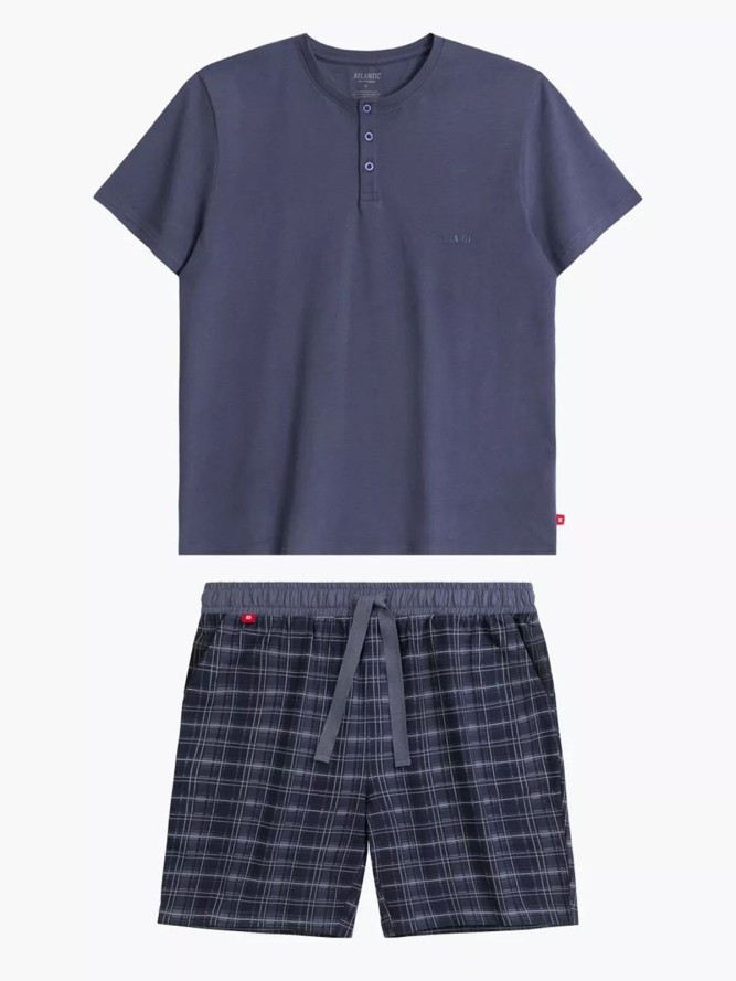 Piżama Atlantic NMP-380 to doskonałe połączenie komfortu i stylu, idealne na letnie noce. Wykonana z wysokiej jakości materiałów, zapewnia doskonałą przewiewność oraz trwałość, co przyczynia się do wysokiego komfortu użytkowania. Model ten cechuje się okrągłym dekoltem na guziki, co dodaje mu elegancji i ułatwia zakładanie. Krótki rękaw doskonale sprawdza się w cieplejsze dni, a krótka nogawka zapewnia swobodę ruchu i korzystne dopasowanie. Motyw w kratkę nadaje zestawowi klasyczny, a zarazem nowoczesny wygląd, co pozwala czuć się stylowo nawet w domowym zaciszu.