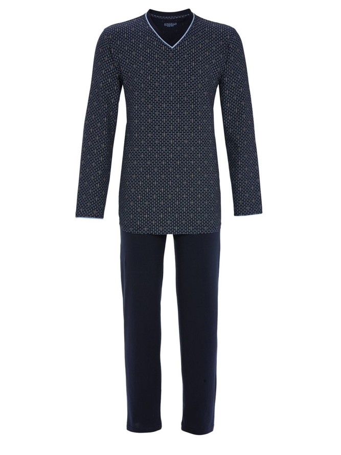 Piżama męska Ringella 5541210 to doskonały wybór dla każdego mężczyzny ceniącego komfort i styl. Wykonana z najwyższej jakości materiałów, zapewnia wygodę i trwałość, co czyni ją idealnym ubraniem do snu. Dzięki dekoltowi w literę V, piżama dodaje elegancji i jest doskonałym rozwiązaniem dla tych, którzy preferują nowoczesny wygląd. Model ten posiada długie nogawki, co czyni go idealnym na chłodniejsze noce, zapewniając komfort termiczny przez całą noc.