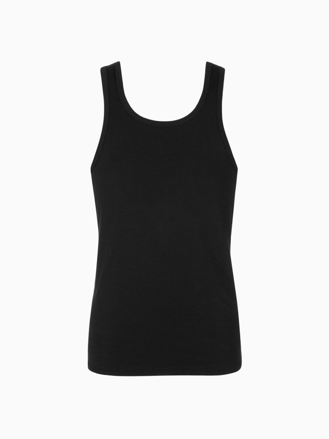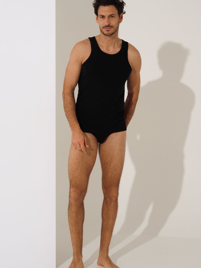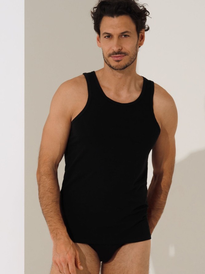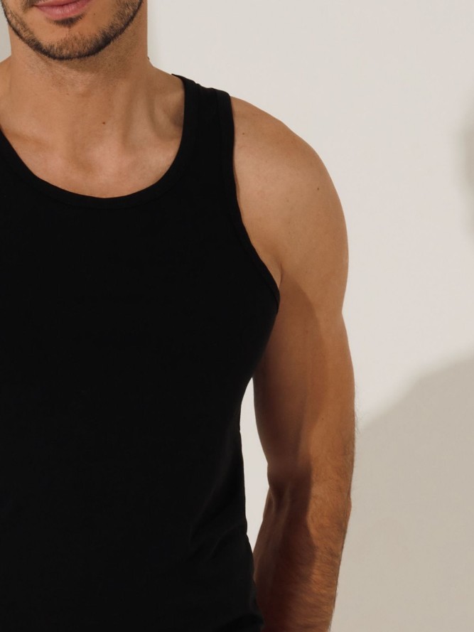Dekolt w kształcie litery V dodaje podkoszulce elegancji, idealnie komponując się z garniturem lub casualowym strojem. Czarna barwa ubrania to klasyka, która doskonale wpisuje się w każdą garderobę, oferując uniwersalność i elegancję. Kategoria podkoszulek, do której należy ten model, podkreśla jego wszechstronność i możliwość noszenia jako warstwa bazowa lub samodzielna część stylizacji.