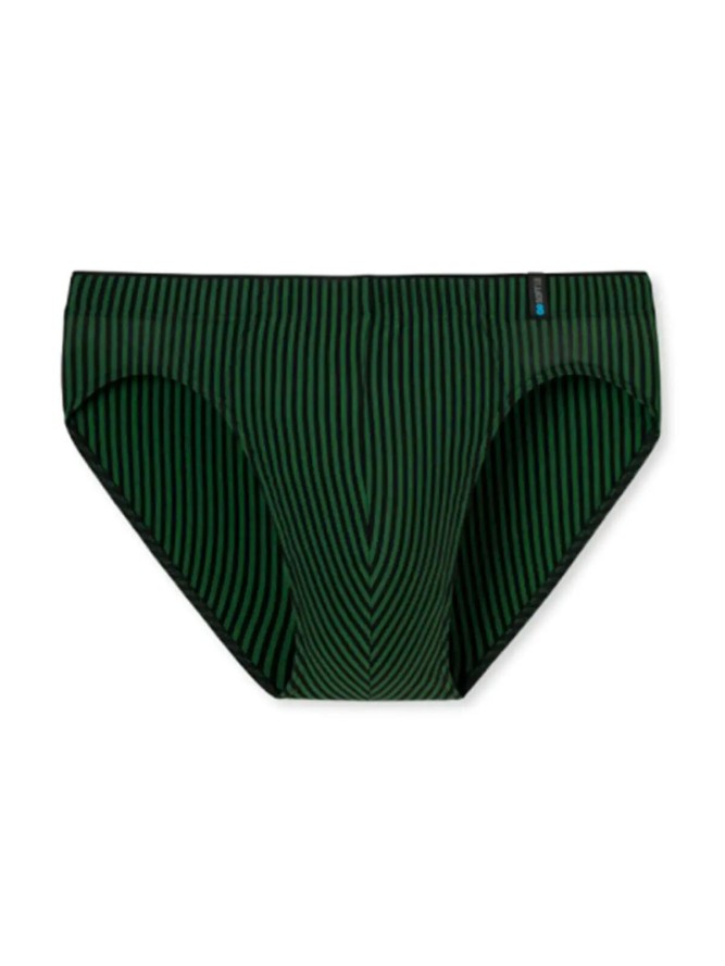 ElastanEleganckie męskie slipy znanej i cenionej w świecie marki Schiesser wykonane z wysokiej jakości, delikatnej i przyjemnej w dotyku czarnej tkaniny w zielone, pionowe prążki. Klasyczny, anatomiczny krój mocno przylegający do ciała i podkreślający atuty męskiej sylwetki od lat cieszy się niesłabnącą popularnością wśród mężczyzn. Sprawdzony fason, o umiarkowanym wykrojeniu, precyzyjnie wykończono płaskim szwem i elastyczną gumką w pasie, która zapewnia wygodę i idealne dopasowanie. Ten niewątpliwie praktyczny rodzaj bielizny zaprojektowano z myślą o mężczyznach, którzy cenią precyzję wykonania oraz wysokiej jakości komfort użytkowania.