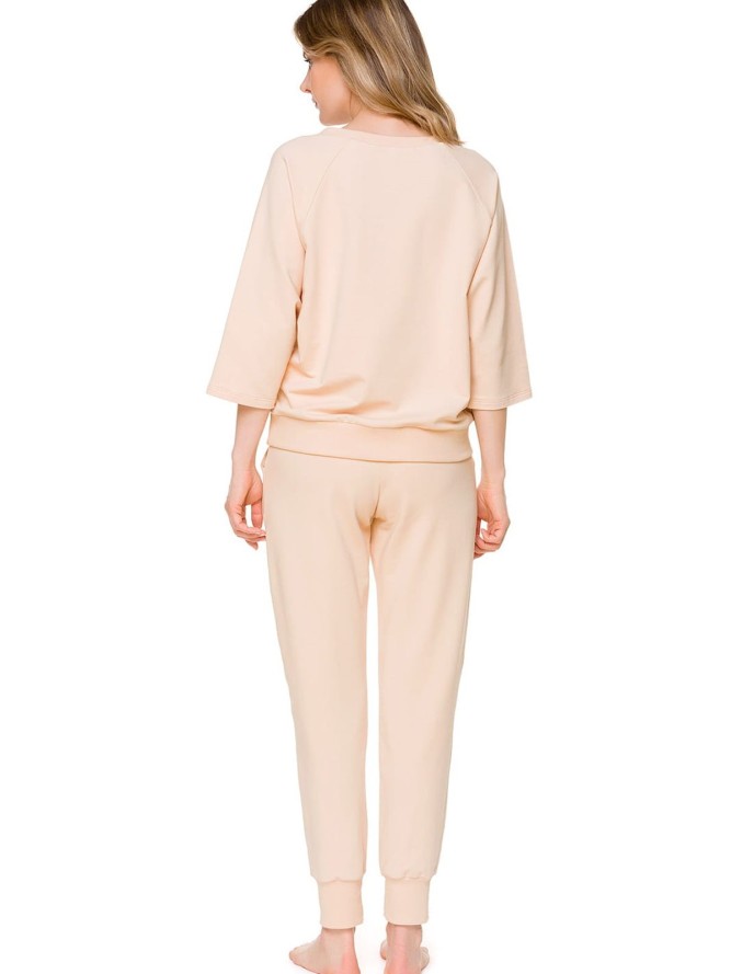 Praktyczna bluza damska. Fason z długim rękawem w pięknym kolorze granatu z okrągłym dekoltem i ściągaczami przy mankietach. Efektowne hafty na plecach oraz na rękawach sprawiają, że bluza może być nie tylko noszona jako sportowa, ale również do...