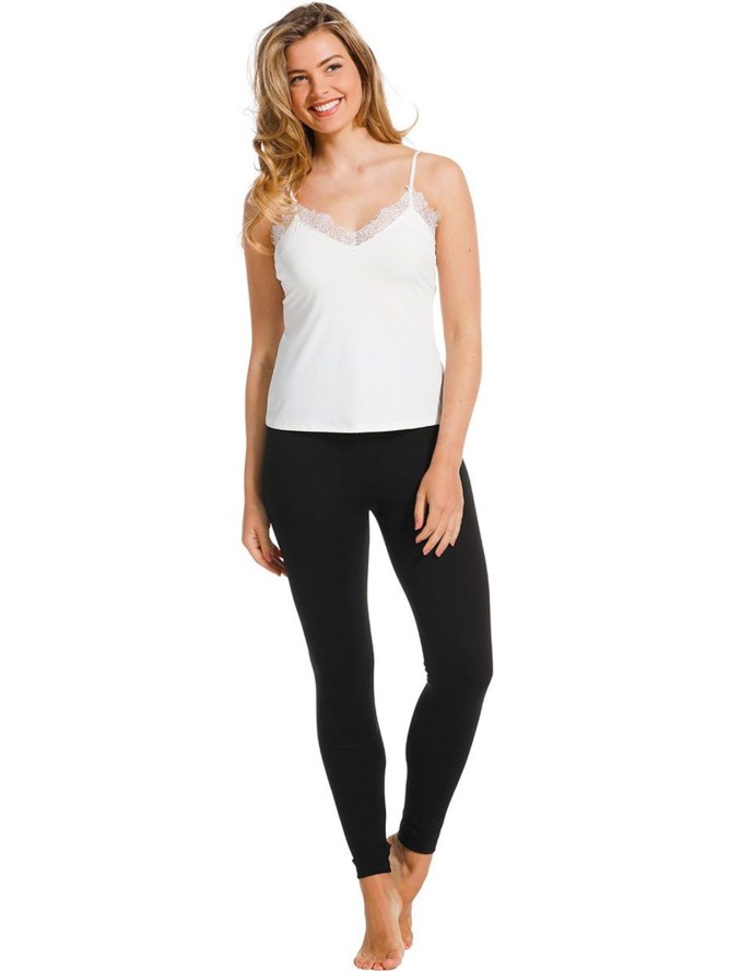 Bluzka posiada klasyczny fason z subtelnie wyprofilowanymi ramiączkami, które zapewniają doskonałe dopasowanie do sylwetki. Uniwersalny, okrągły dekolt podkreśla kobiecość i dodaje klasy każdej stylizacji. Dzięki neutralnej kolorystyce w postaci czystej bieli, bluzka stanowi idealną bazę do tworzenia różnorodnych zestawów zarówno na co dzień, jak i na bardziej oficjalne okazje.