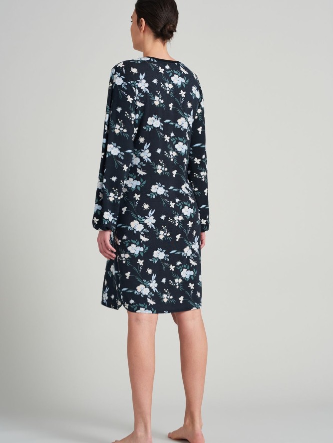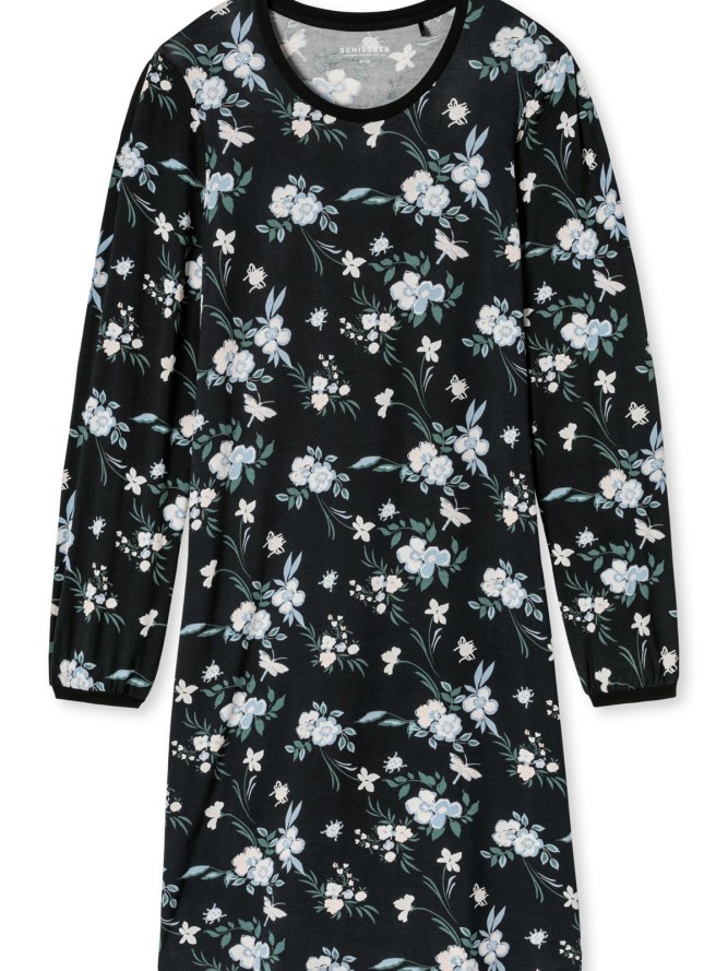 Klasyczna koszulka nocna z krótkim rękawem. Wykonana z micromodalu i bawełny. Wzór czarnych płatków układa się w kwiaty na zielono- limonkowym tle. 50% Bawełna, 50% Modal