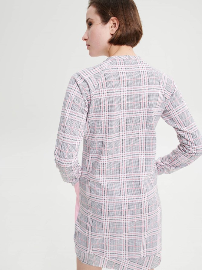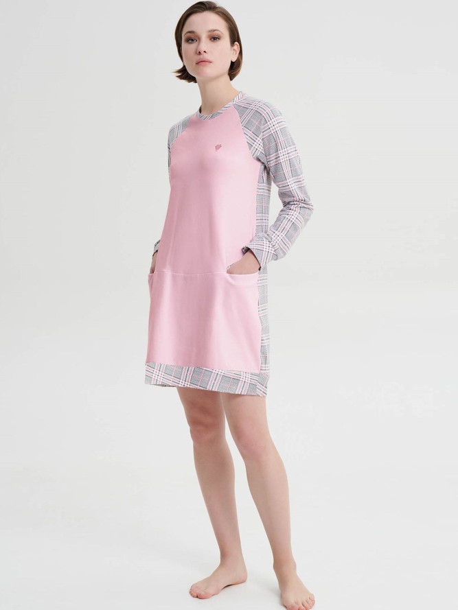 Elegancka nocna koszula w czarnym kolorze . Wysoko zabudowana z delikatną stójką z tyłu zapinaną na guziczek .Karczek i delikatne rękawki wykonane z kwiatowej koronki , na biuście zmysłowe wycięcie w serduszko . Długość nad kolano i prosty...