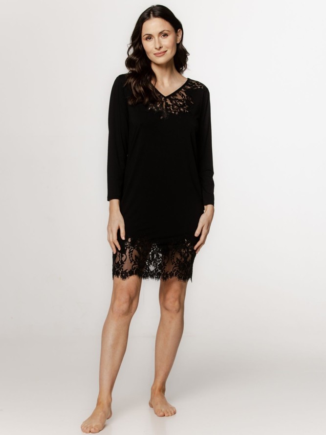 Koszulka COEMI 261C208 posiada przemyślaną konstrukcję, zapewniającą doskonałe dopasowanie do sylwetki. Jej krótki fason doskonale sprawdza się w wieczorowych zestawach, a uniwersalny czarny kolor pozwala na łatwe zestawienie z różnorodnymi elementami garderoby. Wykonana z najwyższej jakości materiałów, gwarantuje komfort noszenia przez cały dzień.
