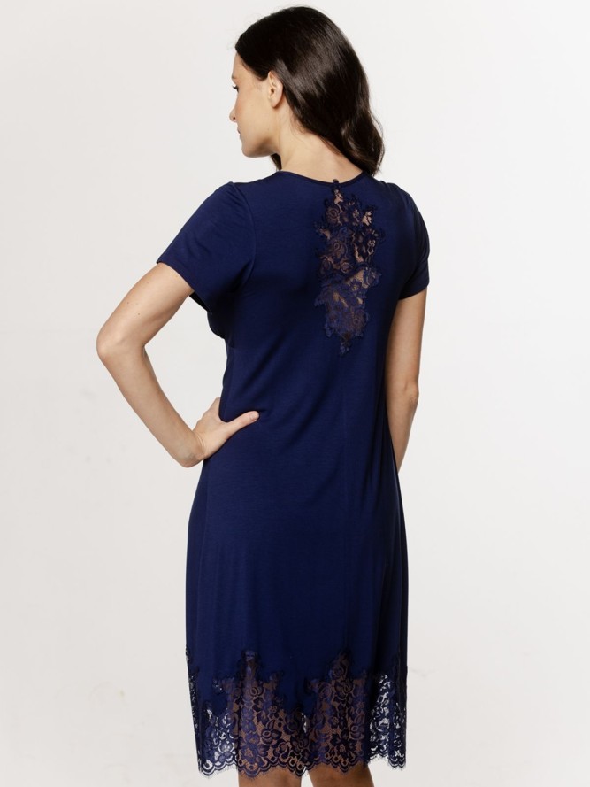 Długość koszulki sięga przed kolano, co czyni ją wszechstronną i komfortową opcją na każdą porę roku. Wybierz koszulkę Coemi 261C302, aby poczuć się wyjątkowo i modnie w każdej chwili. Niech ten klasyczny granatowy odcień stanie się kluczowym elementem Twojej nocnej garderoby, dostarczając zarówno stylu, jak i wygody każdej nocy.