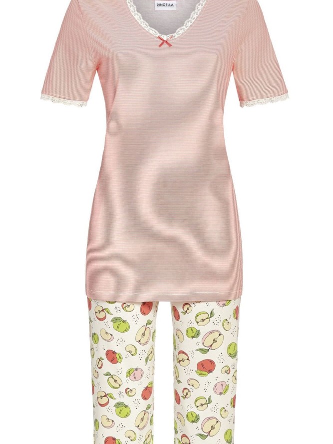 Piżama cechuje się delikatnym dekoltem w serek, który subtelnie podkreśla szyję, a koralowy kolor nadaje jej świeżości i kobiecego uroku.Krótkie rękawy oraz nogawki rybaczkisprawiają, że jest to doskonała propozycja na wiosenne noce. Wysokiej jakości tkanina zapewnia przewiewność i miękkość, gwarantując komfort przez całą noc. To idealny wybór dla kobiet ceniących sobie modę i wygodę nawet podczas snu. Wybierz Piżamę Ringella 4211229 i odkryj nocny relaks w najlepszym stylu.