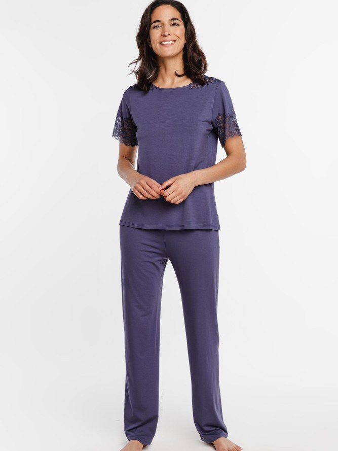 Model ten posiada krótki rękaw, co czyni go idealnym wyborem na cieplejsze noce. Klasyczny krój połączony z delikatnie zaokrąglonym dekoltem dodaje piżamie nowoczesnego charakteru i idealnie dopasowuje się do każdej sylwetki. Długość nogawki została dobrana w taki sposób, by zapewnić pełną swobodę ruchu oraz maksymalną wygodę. Dzięki piżamie Coemi 242C107 poczujesz się nie tylko wygodnie, ale przede wszystkim stylowo, bez względu na porę roku. Znajdź swój spokój w najlepszym wydaniu.