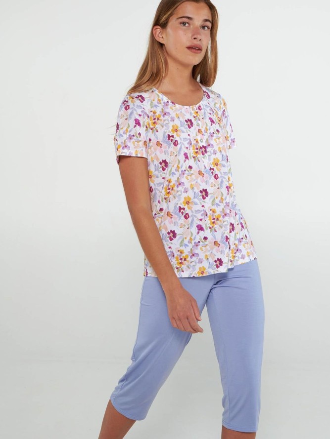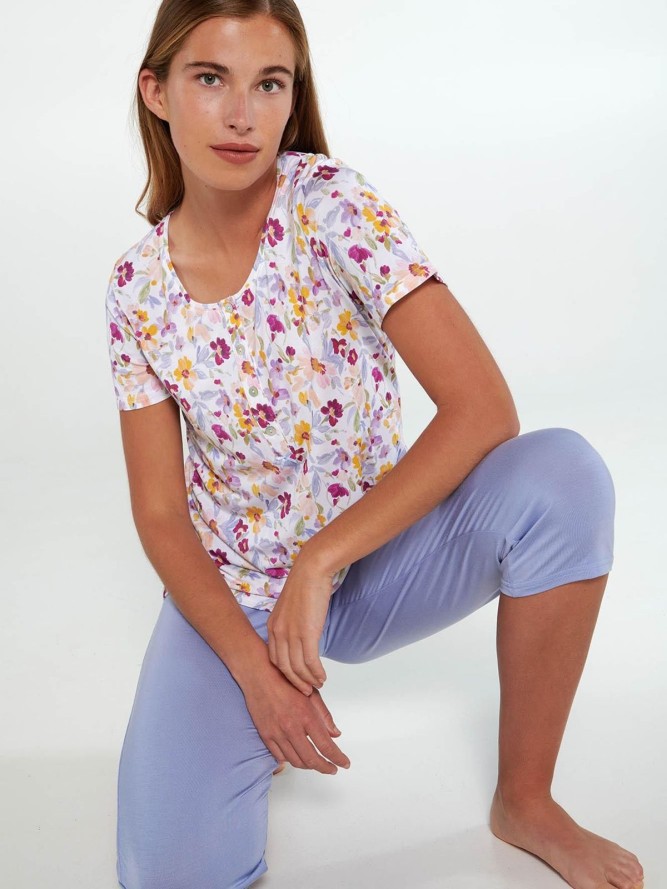 Szukasz idealnej piżamy damskiej, która łączy styl z wygodą? Piżama VAMP 20032 z krótkim rękawem i motywem kwiatowym to doskonały wybór. Wykonana z wysokiej jakości materiałów, zapewnia komfortowy sen i nadaje się na każdą porę roku. Jej klasyczna konstrukcja z dekoltem w kształcie okrągłym podkreśla subtelną kobiecość, podczas gdy krótka nogawka dodaje świeżości i swobody ruchów.
