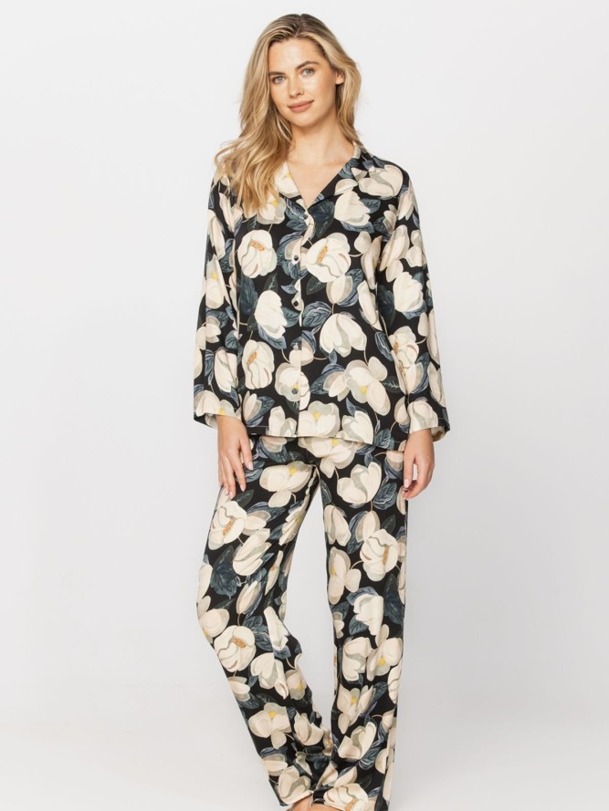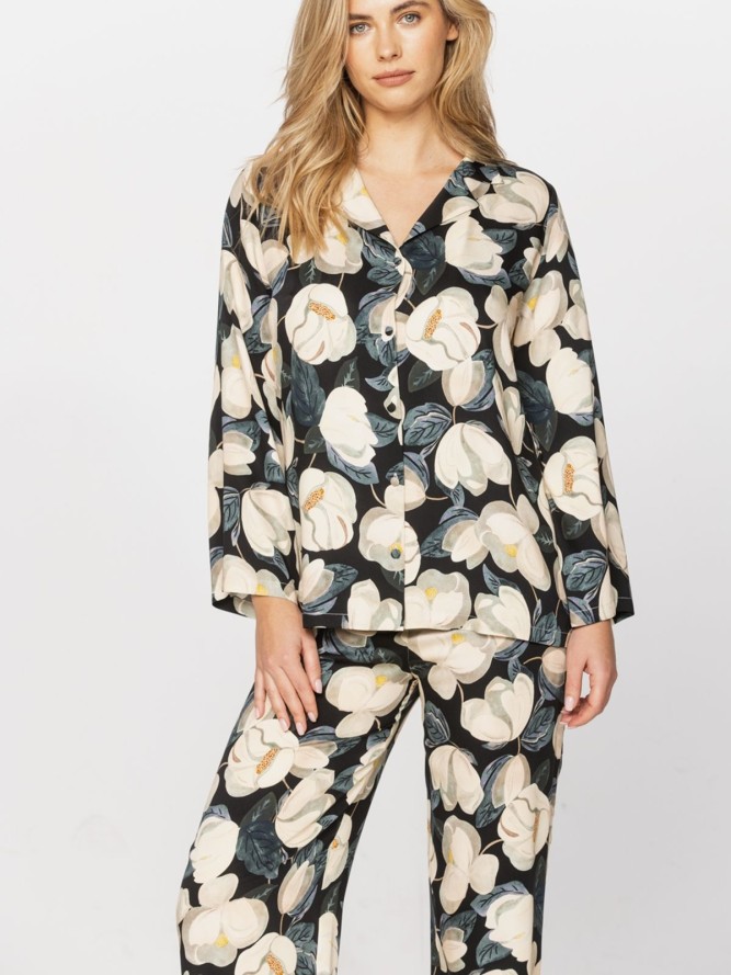 Piżama wykonana jest z wysokiej jakości materiału, który jest przyjemny w dotyku i oddychający, co sprawia, że jest idealna do noszenia zarówno w cieplejsze, jak i chłodniejsze dni. Elegancka długość nogawki zapewnia dodatkowe ciepło, idealnie komponując się z długim rękawem. Model ten to nie tylko wygoda, ale także modne rozwiązanie, które jest obowiązkowym elementem garderoby każdej kobiety ceniącej sobie styl połączony z komfortem. Wykorzystaj ten produkt do budowania swojej kolekcji komfortowej i stylowej odzieży nocnej.