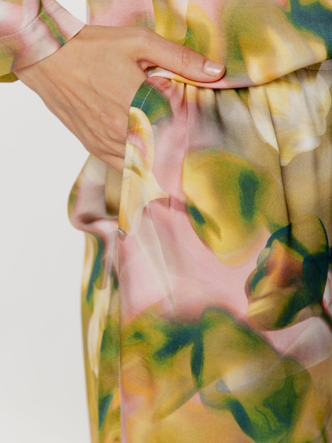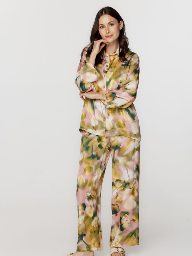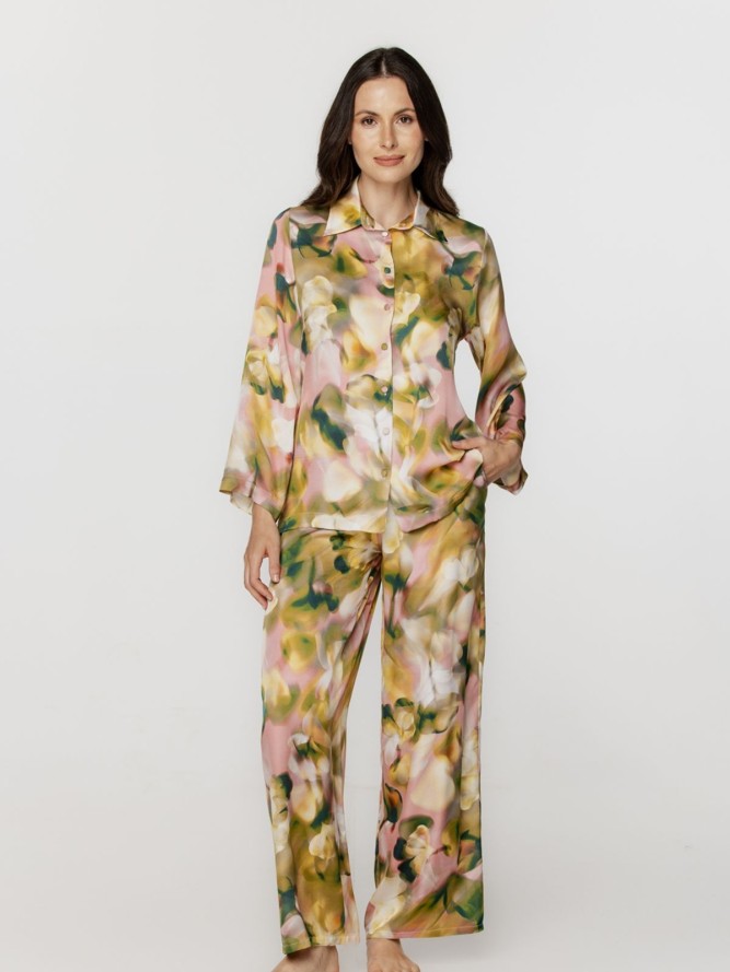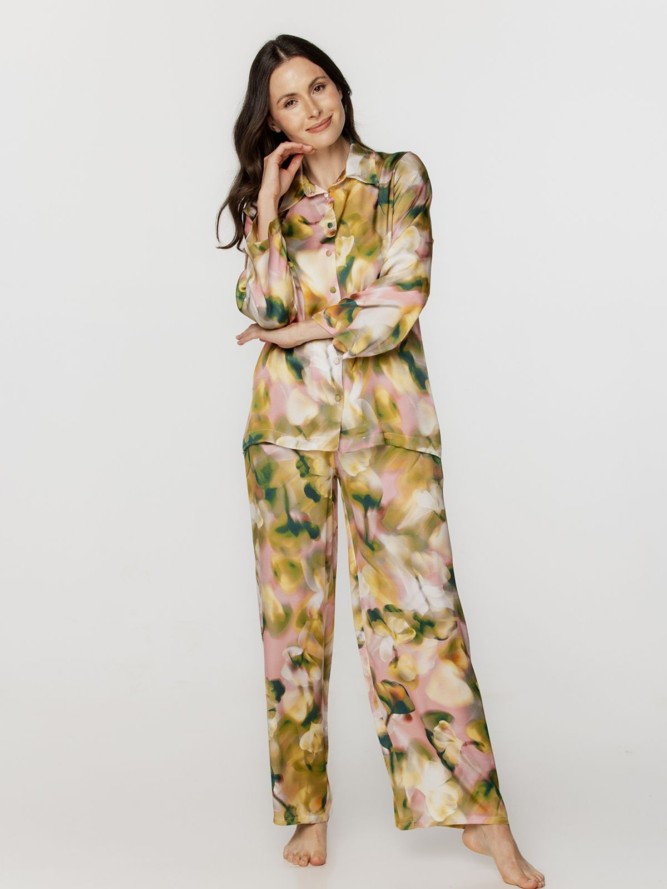 Piżama posiada rozpinaną górę z klasycznym kołnierzykiem, co ułatwia jej zakładanie i zdejmowanie. Długi rękaw sprawia, że jest to idealny wybór na chłodniejsze noce, zapewniając jednocześnie elegancki wygląd. Spodnie o prostej nogawce gwarantują swobodę ruchów i komfort noszenia. Produkt został stworzony z materiałów najwyższej jakości, które są miłe w dotyku i przewiewne.
